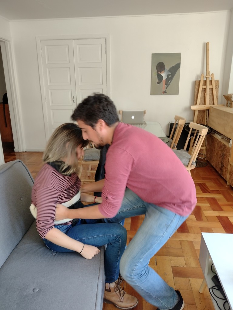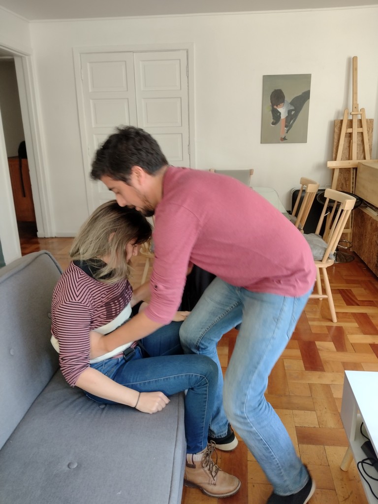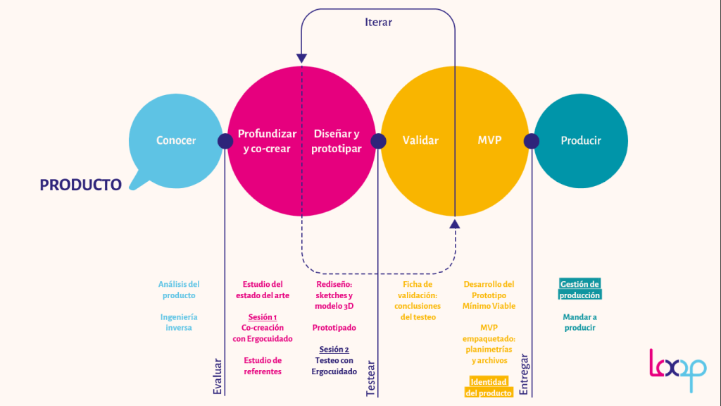 El cinturón ergonómico es un dispositivo rediseñado en Chile por la empresa Ergocuidado y Loop (equipo conformado por Kinesiolog@s, terapeuta ocupacional y diseñadora industrial). Este proceso de rediseño y co-creación, incorporó sesiones donde se estudiaron referentes preexistentes, se prototipó y validó el producto, para luego desarrollar el producto mínimo viable (MVP).